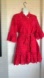 FARM RIO Red Eyelet Button-Up Dress with Belt, Flared Skirt & Bell Sleeves M EUC