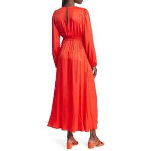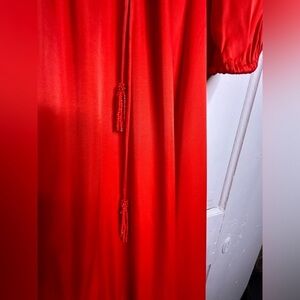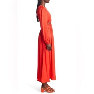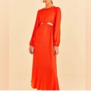 FARM RIO Red Satin Beaded Tassel Belt Cutout Waist Maxi Dress Long Sleeve XL