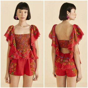 💕FARM RIO💕 Red Tropical Romance Romper XL NWT