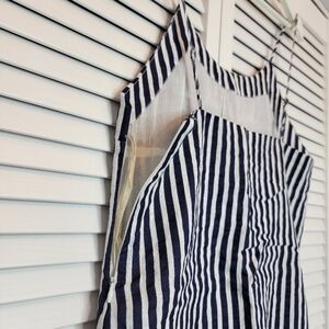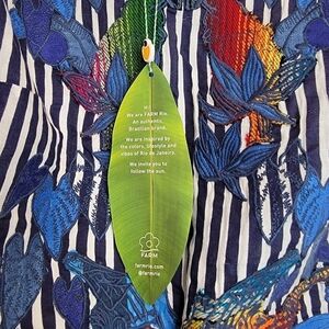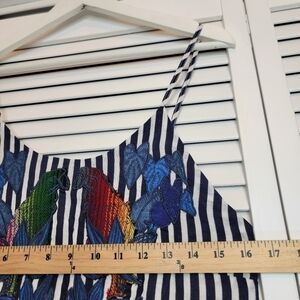 FARM RIO Striped Parrot Embroidered Mini Dress Women's XS Linen Sleeveless Blue