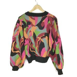 This cozy yet cool knitwear features an effortless fit that gets you comfy for an all-day bright style. Its round neck keeps things classic, while the vibrant abstract print invites the colorful layers of your soul to come out for a joyful sway through life's adventures.