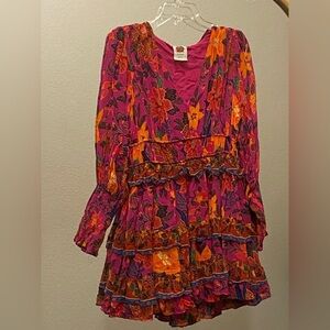 FARM RIO Tropical Tapestry Long-Sleeve Minidress Size M