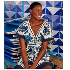 FARM RIO Tropical Tiles Floral Linen-blend Mini A-line Dress Size Medium