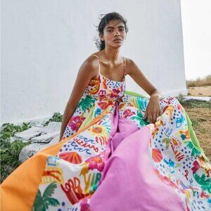 💕FARM RIO💕 White Good Vibes Maxi Dress Floral Tropical Print XS NWT