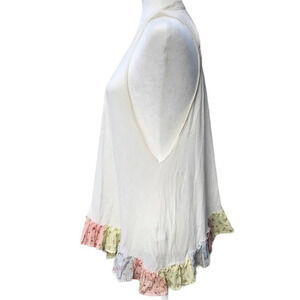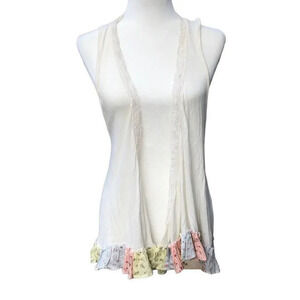 FARM RIO White Ruffle Bottom Open Cardigan Sweater Vest Women’s Size Small +FLAW