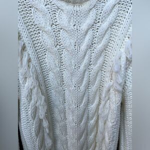 FARM RIO White Sweater Dress Cable Knit Long Sleeve High Neck Size M