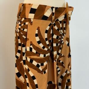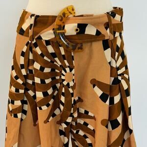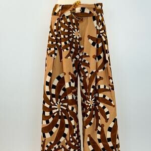 FARM RIO Wide Leg Pleated Tailored Pants Palazzo Tan/Brown Banana Tropical S NWT