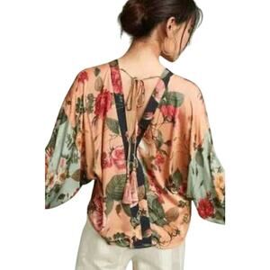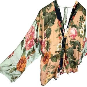 FARM RIO Women’s Kimono Sleeve Toe Back Vneck Mixed Floral top Medium