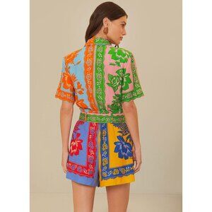 FARM RIO Women's Mixed Lace Garden Scarves Romper Size XS In Multi