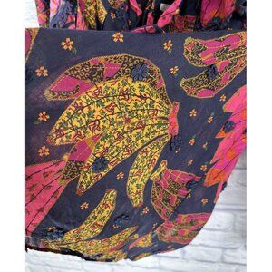 FARM RIO Women's Navy Patchwork Banana Ruffle Tie Neck Embroidered Blouse NWT Medium