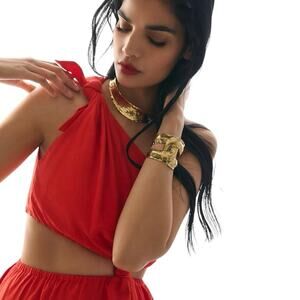 FARM RIO Women’s One shoulder Knot Linen Blend Midi Dress in Red-Size S