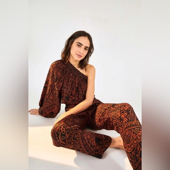 Style tags: preppy, boho, bohemian, artsy, indie, hippie, printed, asymmetrical, one shoulder, one piece, jumpsuit, romper