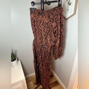 FARM RIO Women’s Size S Black & Orange Camouflage Snake One Shoulder Jumpsuit