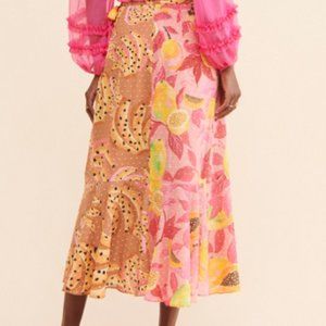 FARM RIO Women's Twice the Prints Wrap Midi Skirt Size S In Tropical Print