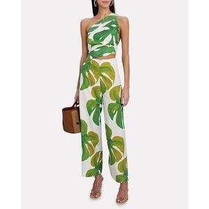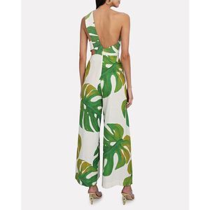 FARM RIO Monstera One-Shoulder Linen-Blend Jumpsuit
