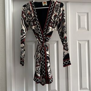 FARM RIO ‘Passion Scarf’ Black MINI WRAP DRESS