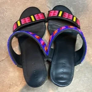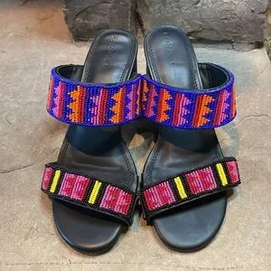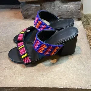 Women’s Size 7 Beaded Block Heel Slide Sandals💥