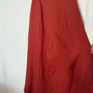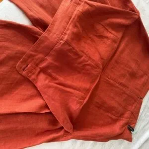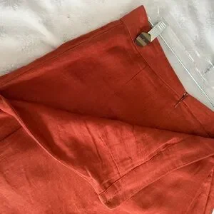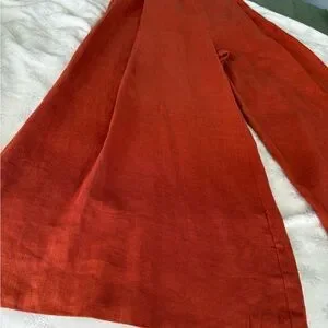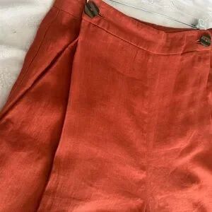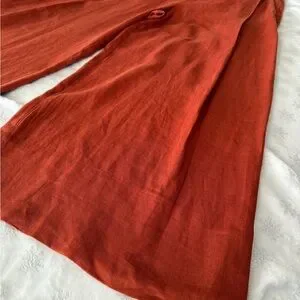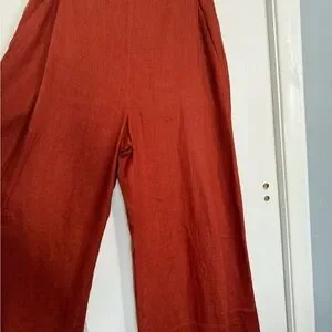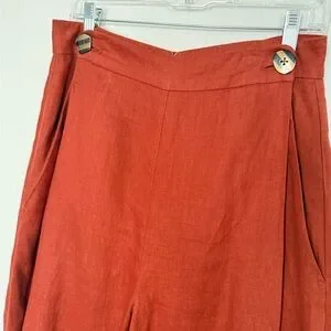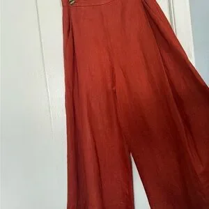 Farm Rio Rust Brown Wide Leg Linen Nautical Pants. These airy linen trousers feature a high-waisted, wide-leg silhouette with button details at the waist.