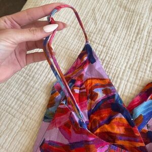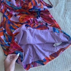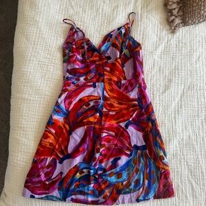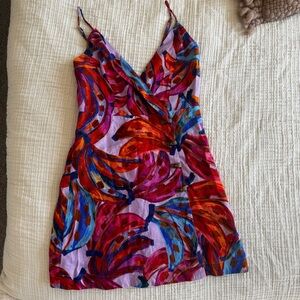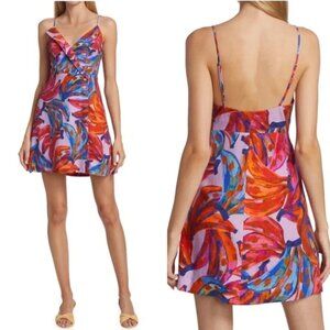 Farm rio linen-blend mini dress with fun colorful bananas pattern.
