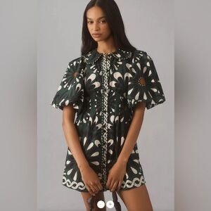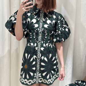 FARM Rio Ainika Flowers Short Puff-Sleeve Mini Dress