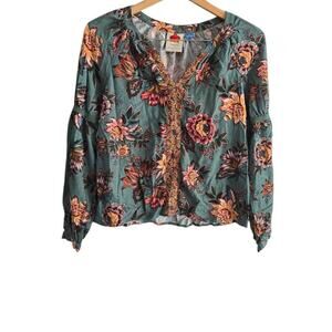 FARM Rio Anthropologie Boho Paola Floral Peasant Blouse Top Shirt Flowy XS