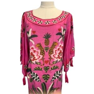 FARM Rio Anthropologie Pink Leopard Forest Cover-Up Dress Caftan Small