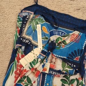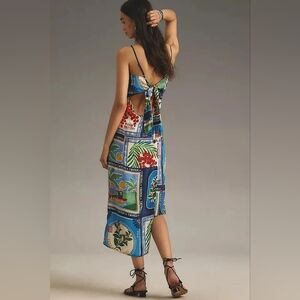 Embrace the vibrant spirit of resort wear with this stunning FARM Rio sundress, featuring a captivating blue and green tropical print. The sleeveless design with spaghetti straps offers a breezy feel, perfect for a night out.