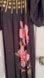 Chic black dress with bold pink floral patterns. Features intricate gold detailing. Perfect for stylish outings.