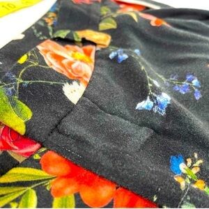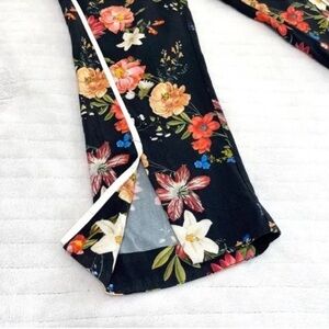 Step into elegance with FARM Rio's black floral capris, featuring a striking garden-inspired print. These capris offer a relaxed fit with an open kick flare design. The pants are in overall great condition but do have wash wear.