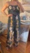 Chic black jumpsuit with vibrant floral design. Features a flowy silhouette and adjustable straps.