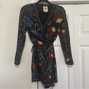 FARM Rio Black Floral Wrap Mini Dress Long Sleeve Size XS