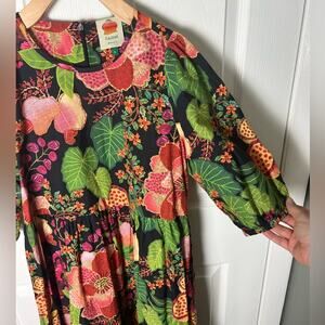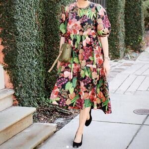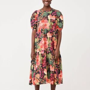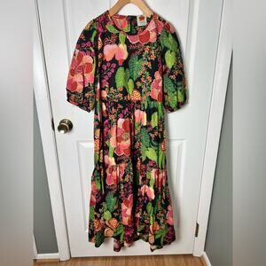 FARM Rio Black Fruit Floral Midi Dress in Multi S