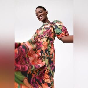 A powerful statement or a total knockout? You name it! The Black Fruit Floral Midi Dress features an easy fit to have a break from clingy outfits. This dress offers a comfortable look, and the tropical new print is a must-have for the season. Golden tip? Pair it with a same print jacket for a stunning look.