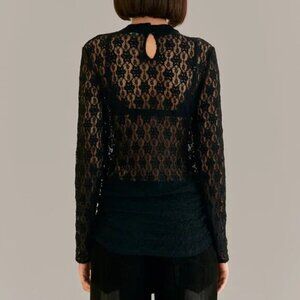 FARM Rio Black Lace Long Sleeve Blouse