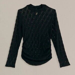 FARM Rio Black Lace Long Sleeve Blouse. Sz: L