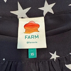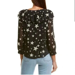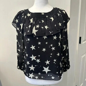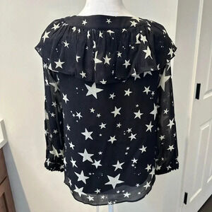FARM Rio Black White Star Stardust Sheer Blouse Black Top Shirt Size XS