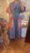 Charming blue dress by FARM Rio. Features intricate floral embroidery in red and orange.