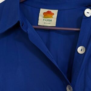 Elegant blue dress. Features long sleeves and button-up front. Stylish waist tie detail.
