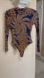 Stylish long-sleeve bodysuit with intricate patterns. Features a blend of blue and tan colors. Perfect for a chic look.