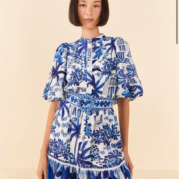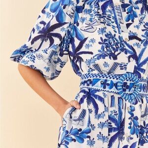 FARM Rio Blue and White Patterned Dress