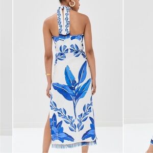 FARM Rio Blue and White Tie Front Halter Midi Dress