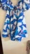 Vibrant tropical print dress. Features bold blue and white pattern. Puffy sleeves add flair. Perfect for summer outings.