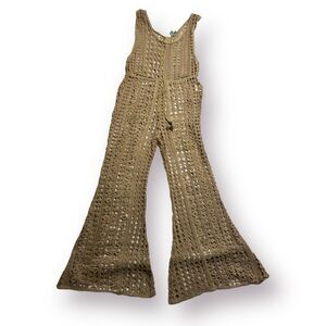 FARM Rio Boho Chic Jumpsuit Mesh Flare Leg Brown Vintage Rare Jumpsuit Small