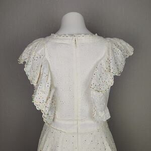 FARM Rio Boho Ivory Eyelet Lace Patch Beaded Tiered Mini Dress Size Medium
