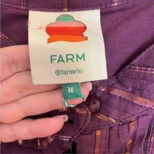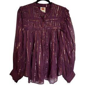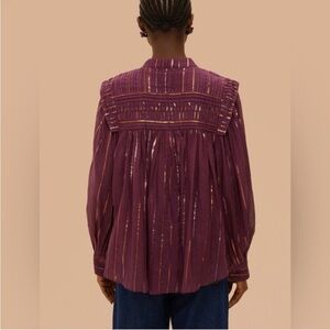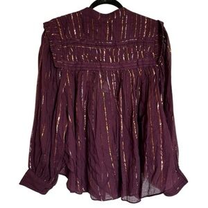 FARM Rio Burgundy Pleated Yoke Long Sleeve Blouse