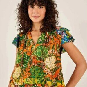 FARM Rio Caipirinha Tropical Floral Multi Ruffle Sleeve Blouse XS $159