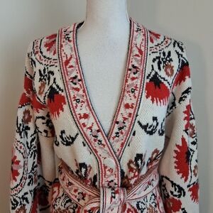 FARM Rio Cashew Mandala Cardigan Belted V-Neck Sweater Exclusive Size Small