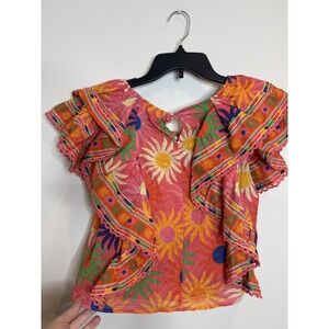 FARM Rio Colorful Floral Ruffle Blouse