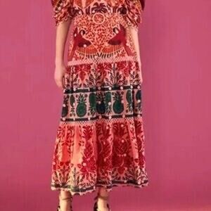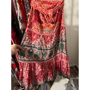This pink maxi skirt has 3D flower appliques and laces all around, and the print is something that ticks the love-forever box in your wardrobe list. Tropical tones define this colorful skirt cut from pure cotton and tiered with rows of ruffles.