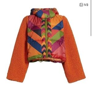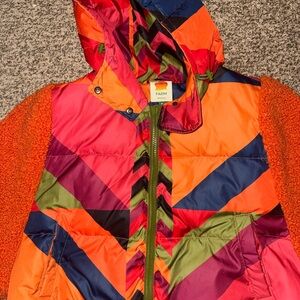 Vibrant puffer with a mix of bold colors. Perfect for warmth and style. In perfect condition. Originally paid 350